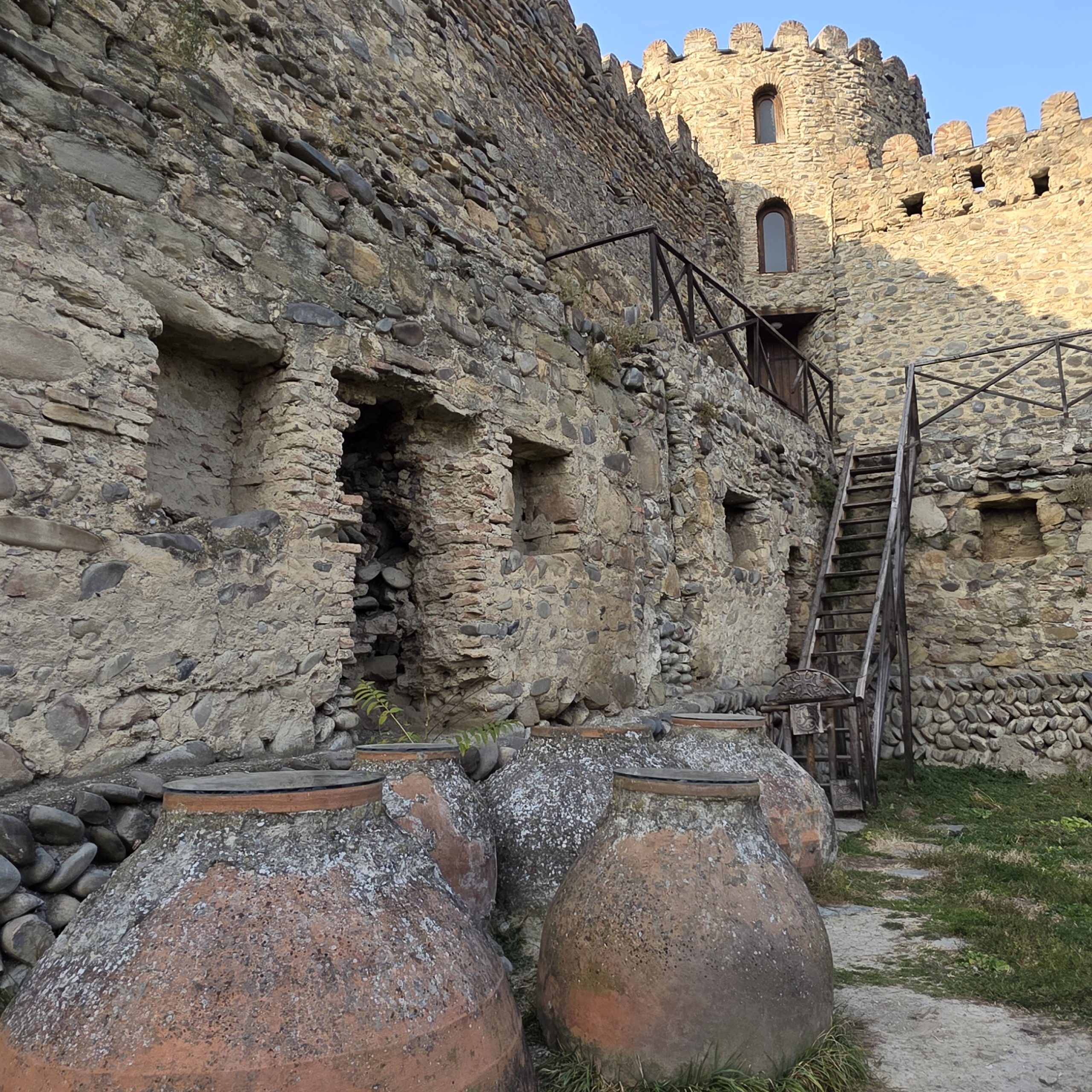 The cathedral complex is surrounded by a defensive wall built in 1787 during the reign of King Erekle II. The 11th-century gate and fragments of the palace of Catholicos Patriarch Melchizedek are preserved on the west side.