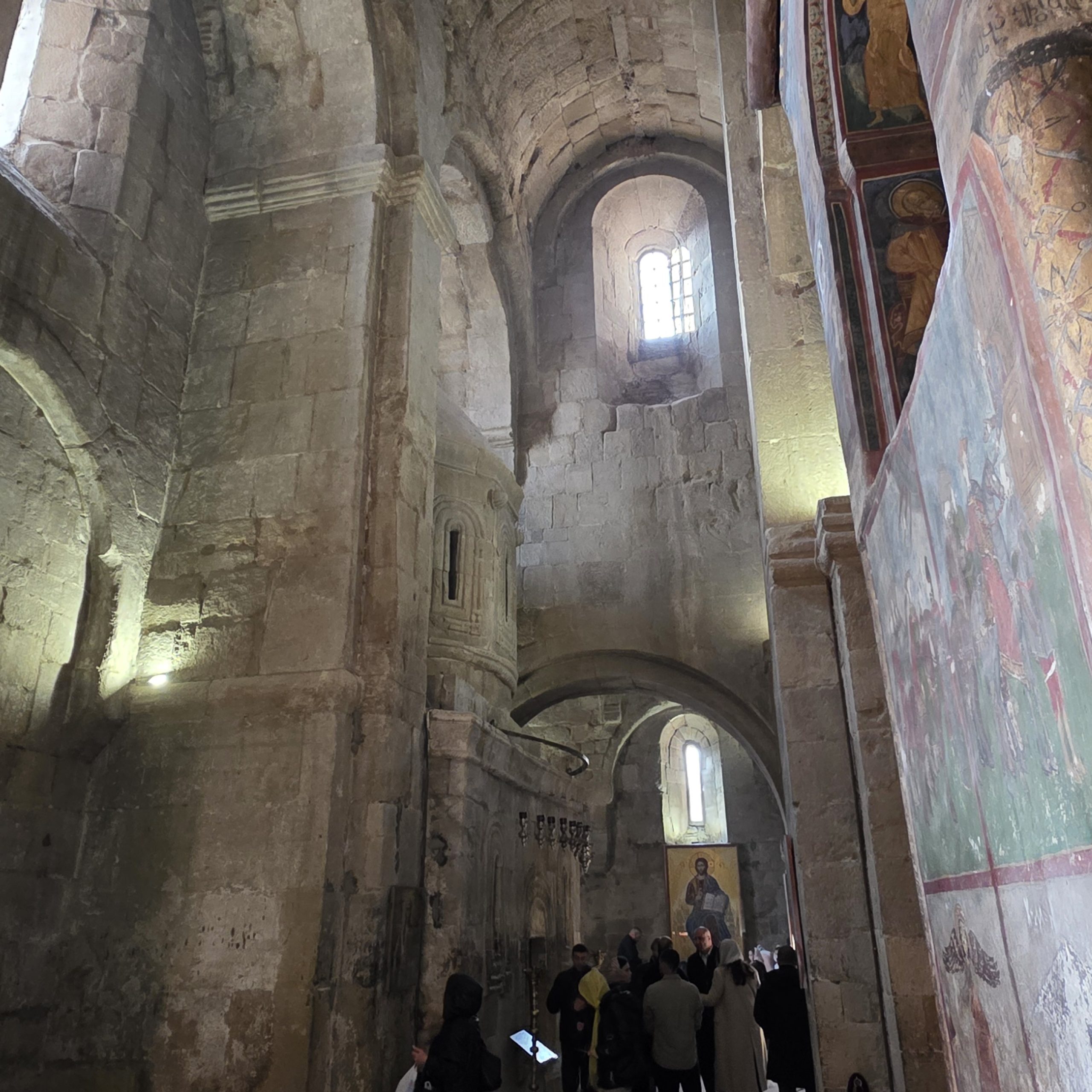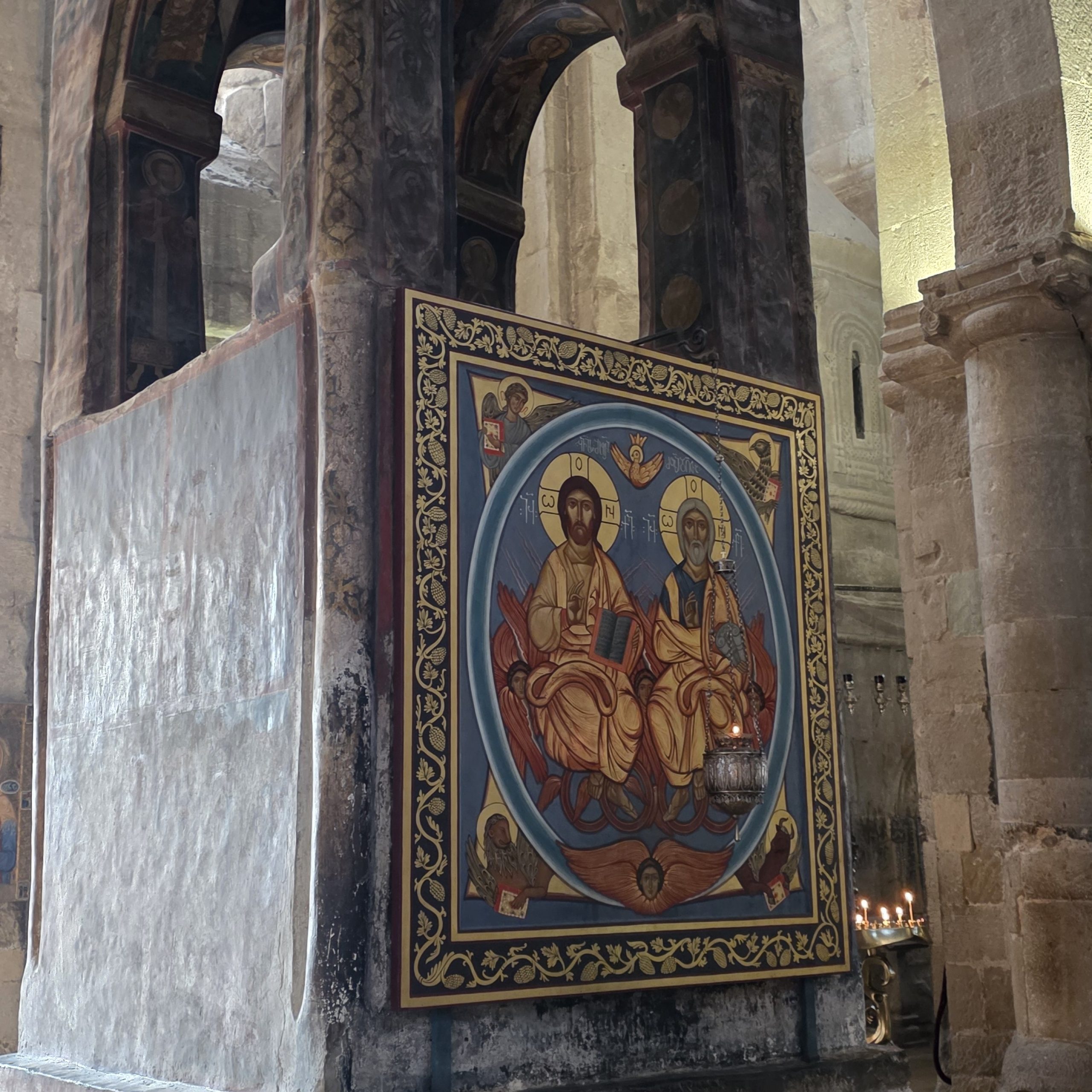In the 4th century, after the conversion of King Mirian III to Christianity by Saint Nino, a church was commissioned to be built on the site where the cedar tree stood. Seven columns were made from the cedar for the church’s foundation, but one of them miraculously rose into the air and only returned to earth after Saint Nino prayed through the night. A sacred liquid with healing properties was said to flow from this “life-giving pillar,” giving the cathedral its name.