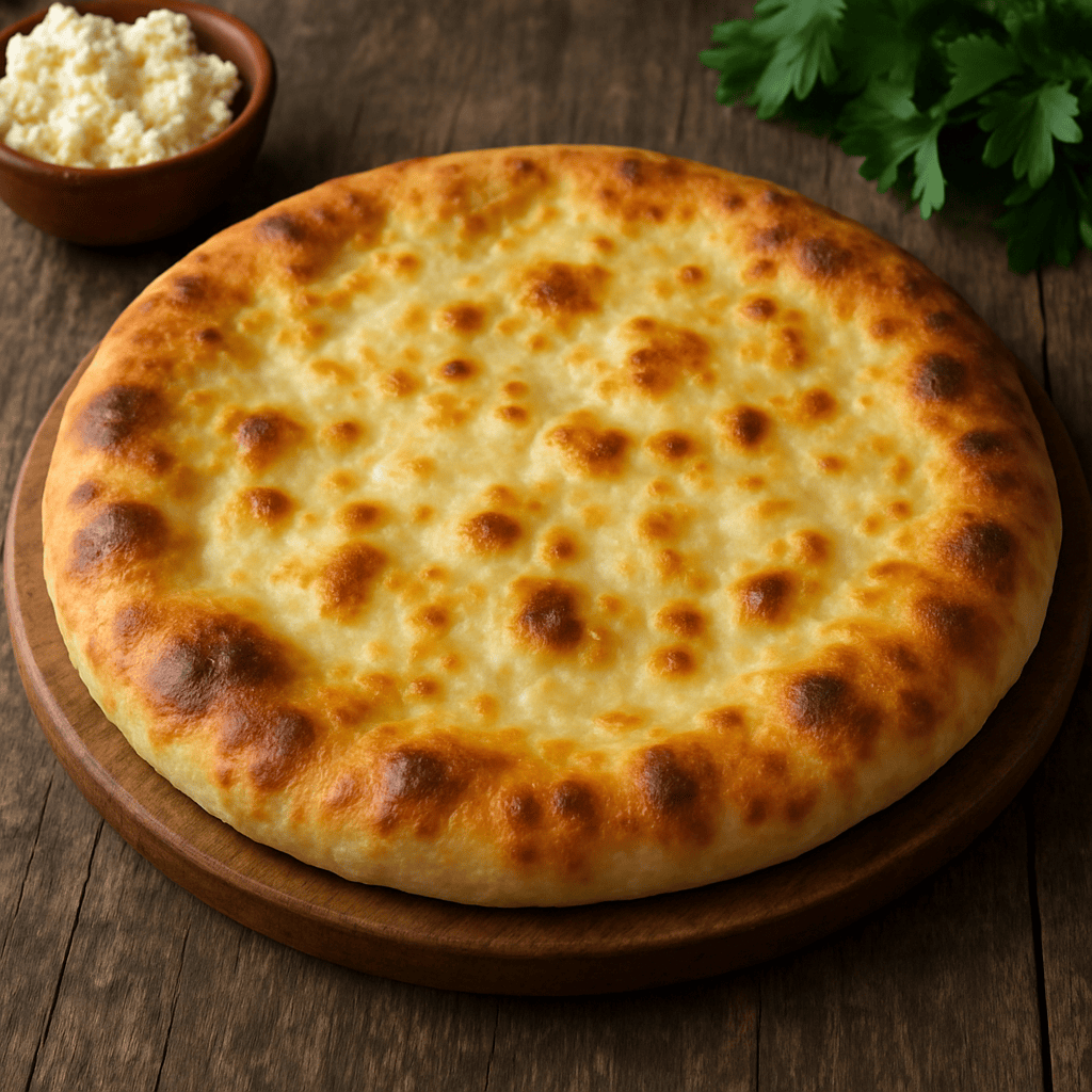 Megruli Khachapuri (მეგრული ხაჭაპური): Similar to Imeruli, but with extra cheese melted on top of the bread as well as inside.
